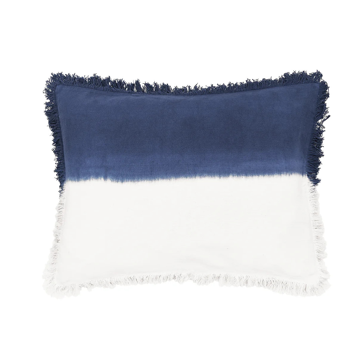 With a dip dye technique reminiscent of the free-spirited style of tie-dye, the Aster collection gives your modern look a little retro twist. This indigo and white pillow sham is finished with a drawn edge fringe, so it coordinates perfectly with the distressed accents, boho tassels, and frayed edges of your chic and chill bedroom. Each piece in the carol & frank Aster collection is individually dyed by hand with quality materials, which means no two are exactly alike. Color variations and slight irregularities in pattern are not mistakes, but part of what makes this collection unique.