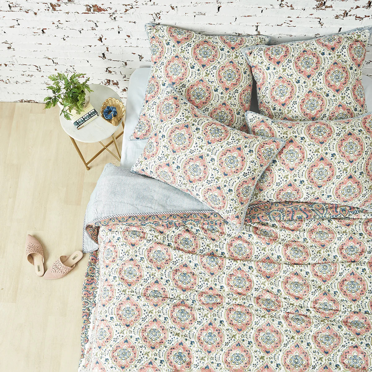 Loading... Please wait...Style your bed with a piece of textile art. The carol & frank Freddie Bedding collection marries the simplistic technique of Indias kanthra pearl cotton stitching with a vibrant symmetrical, diamond-esque motif. With two beautifully handstitched colors to choose from, you will be transported to the land of Nirvana as soon as your head hits the pillow! At carol & frank we believe different is beautiful! Each piece in the Freddie collection is individually screen printed by hand with quality materials, which means no two are exactly alike. Color variations and slight irregularities in pattern are not mistakes, but part of what makes this collection unique. Congratulations, you will soon be the proud owner of a one-of-a-kind piece of art!