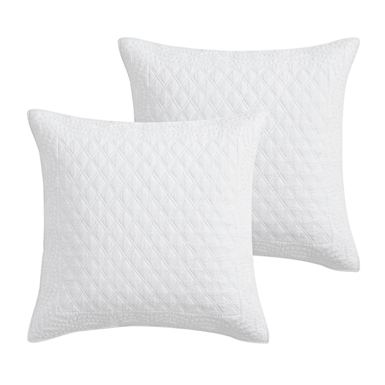 The Ballou Quilted Euro Sham Set by Levtex Home is inspired by timeless quilting details from yesteryear. Offered in bright white and navy blue, this design will immediately transform your bedroom. These shams feature a quilted diamond design with a border all around. The Euro Sham Set of 2 (26x26in.) is cotton front and back, quilted with a cotton rich filler (71% cotton, 21% polyester, 8% rayon) and is machine washable. Pillow inner not included. Enjoy this for years to come!