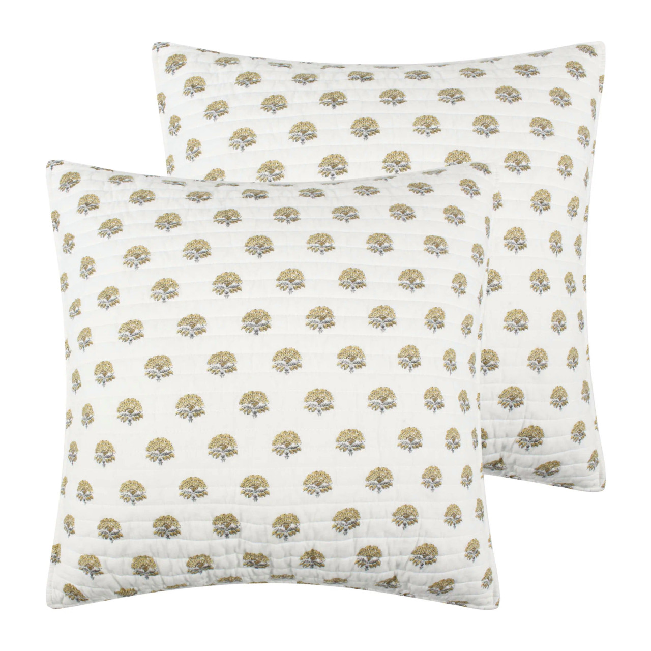 The Kamira Quilted Euro Sham by Levtex Home is inspired by summer country gardens. Offered in ochre and spa colors, this design will immediately transform your bedroom. These shams feature a miniature flower bush pattern all over. The Euro Sham (26x26in.) is cotton front and back, quilted with a cotton rich filler and is machine washable. Pillow inner not included. Enjoy this for years to come!