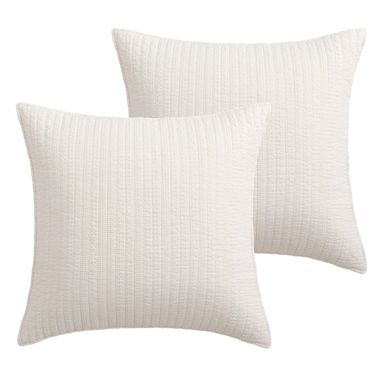 The Loden Quilted Euro Sham Set of 2 by Levtex Home is inspired by a minimalistic modern aesthetic. Offered in cream and taupe, this design will immediately transform your bedroom. These shams feature a waffle weave that switches from small to larger scale, creating the look of stripes. The Euro Sham Set of 2 (26x26in.) is cotton front and back, quilted with a cotton rich filler and is machine washable. Pillow inner not included. Enjoy this for years to come!