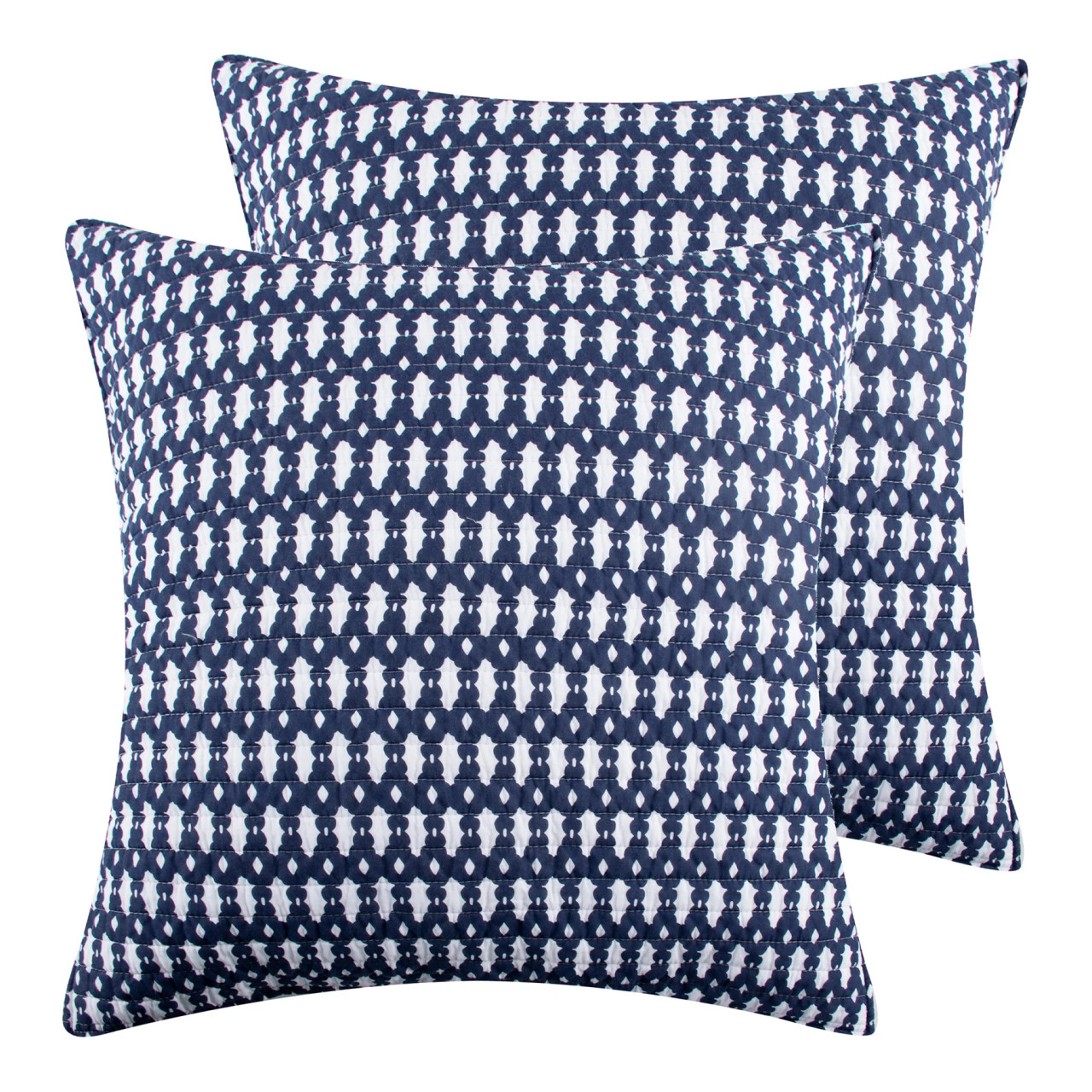 The Night Garden Quilted Euro Sham Set of 2 by Levtex Home is inspired by a flourishing garden. Offered in navy and white, this design will immediately transform your bedroom. These shams feature an ikat inspired geometric design in navy and white. The Euro Sham Set of 2 (26x26in.) is cotton front and back, quilted with a cotton rich filler and is machine washable. Pillow inner not included. Enjoy this for years to come!