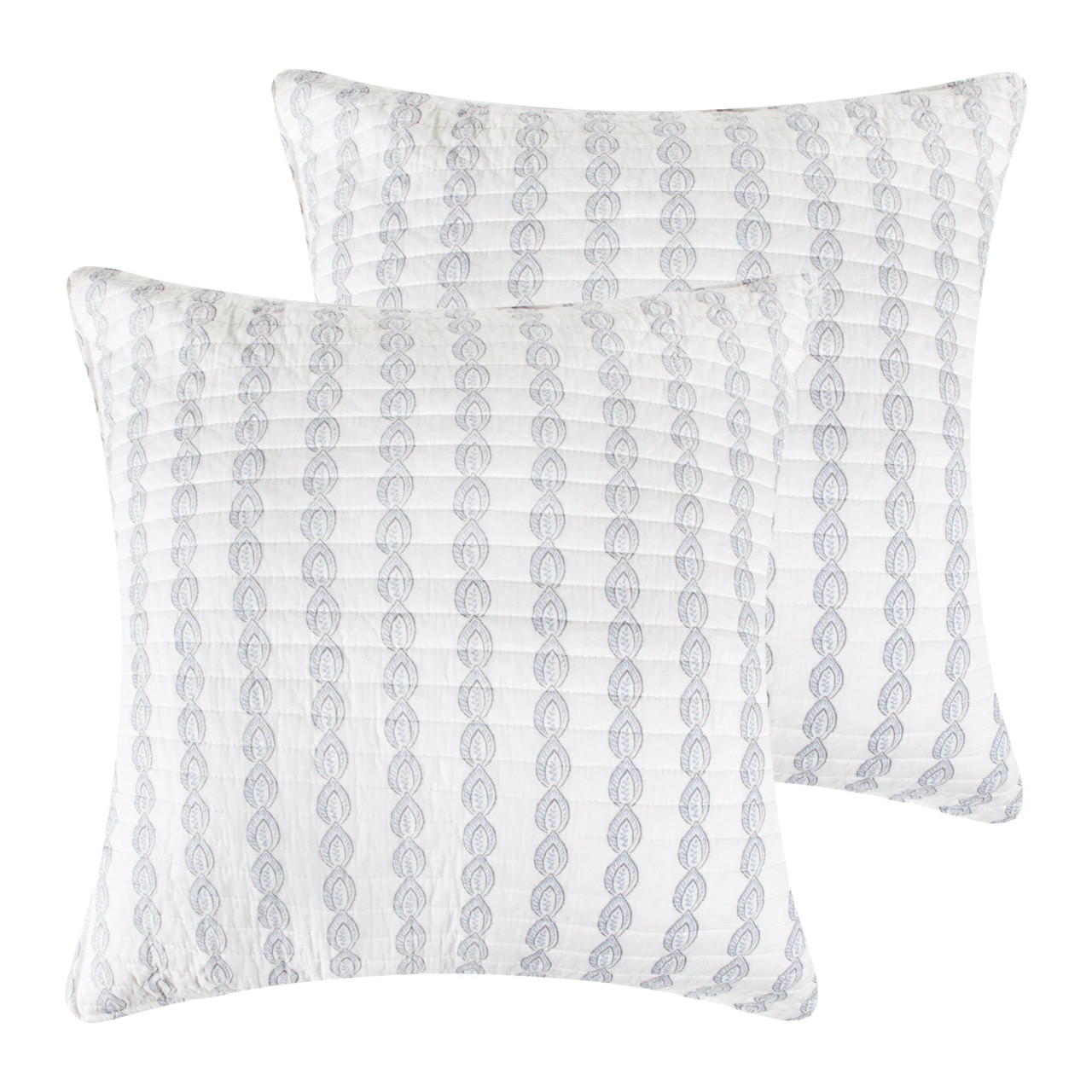 The Selesta Quilted Euro Sham by Levtex Home is inspired by a beautiful garden of floral vines. Offered in two color palettes, cream, grey with taupe, and cream, grey and blue; this design will immediately transform your bedroom. The shams feature a lovely pattern of outlined leaves that match the Selesta quilt. The Euro Sham (26x26in.) is microfiber, quilted with a cotton rich filler and is machine washable. Pillow inner not included. Enjoy this for years to come!