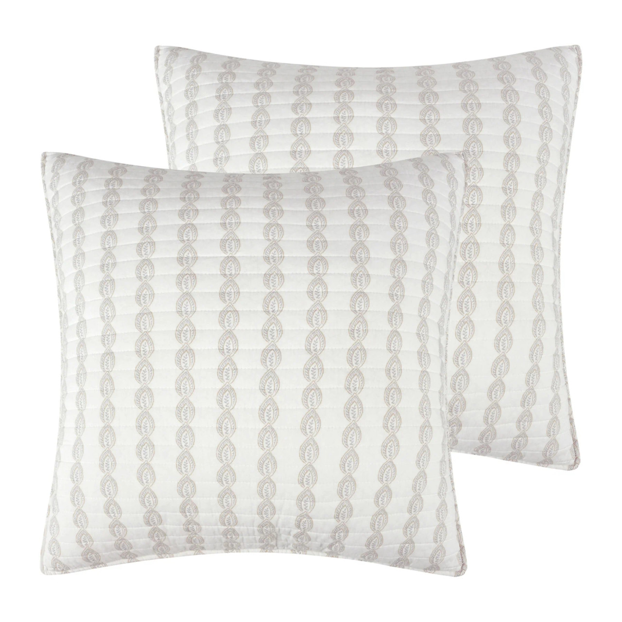 The Selesta Quilted Euro Sham by Levtex Home is inspired by a beautiful garden of floral vines. Offered in two color palettes, cream, grey with taupe, and cream, grey and blue; this design will immediately transform your bedroom. The shams feature a lovely pattern of outlined leaves that match the Selesta quilt. The Euro Sham (26x26in.) is microfiber, quilted with a cotton rich filler and is machine washable. Pillow inner not included. Enjoy this for years to come!