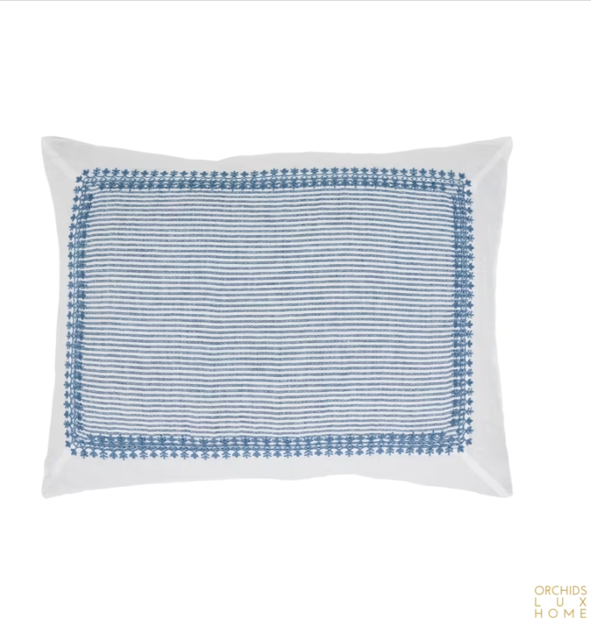 he Orchids Lux Home Westport bedding is all about the finest details. We have considered every detail from the high-quality linen to the intricate stitched embroidery for bedding that's both luxurious and incredibly soft to the touch. The yarn-dyed linen stripe border adds a nice contrast to the textured embroidery. Even better, it gets softer and softer with each wash.