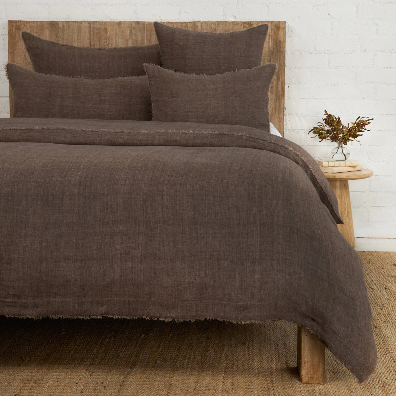 Our beloved duvet cover and shams, with Hunter’s refined touch. Gloriously soft linen fabric finished with our eyelash fray edging. Each detail, from the already-soft washed linen to the mother-of-pearl closures and inner corner duvet ties, elevates the everyday beyond expectation.